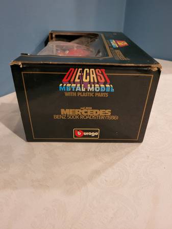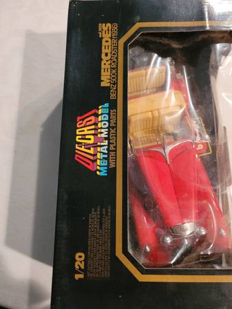 1936 Mercedes Benz 500K Roadster Die Cast 1:20 Car. Never been played with, still secured in the box. See pictures for information and any imperfections. Box isnt in perfect condition. New Bx car...