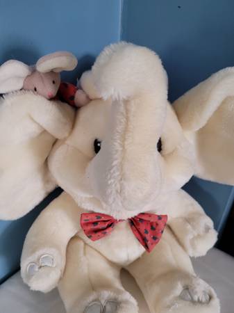 Plush Elephant with mouse, measures about 12" tall. See pictures for any imperfections. Used Bx stacked