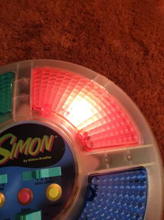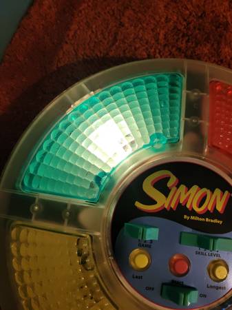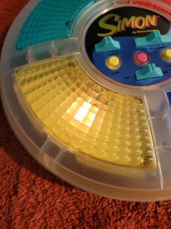 Vintage 1978 Simon Game by Milton Bradley. All colors light up, blue, green, red press good, yellow you have to press in the top left corner for it to work, it works. Used Bx35