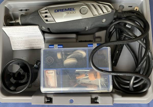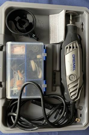 Dremel 3000 1.2 Amp Variable Speed Rotary Tool Kit, & Accessories in great condition, lightly used for about 6 years around the house, comes with lots of grind wheels and bits. My price is $20. Will meet at Meijers on Wilder Rd. for safety, and cash in person only. No shipping or money orders, checks.