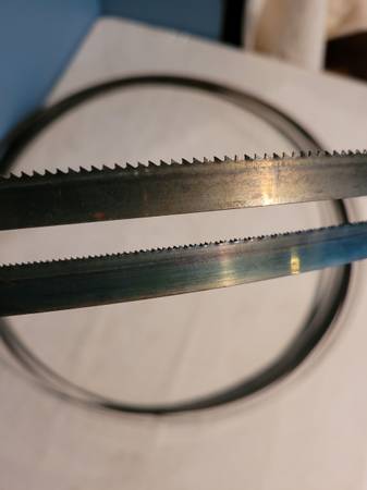 Band Saw Blades, have 8 Blades left. They all measure about 67 1/2" long x 1/2" wide. 7-blades 10 tpi, 1-blade 18 tpi. They are $10 each blade. Bx closet