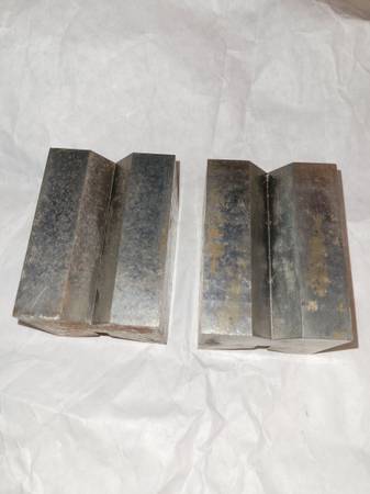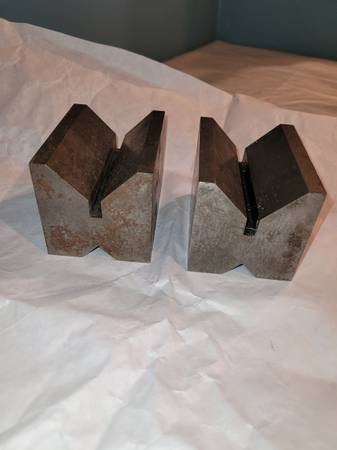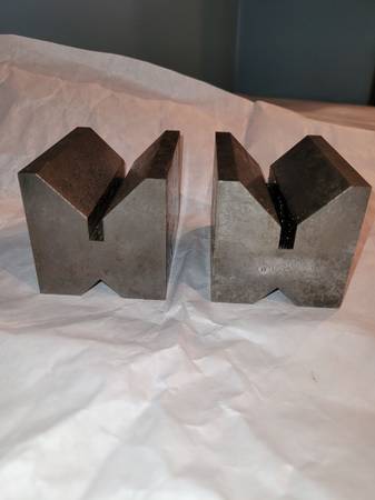 V-Blocks, measures about 2 1/2" wide x 3 3/8" long x 2 1/2" tall. See pictures for information and any imperfections. Used Bx bat