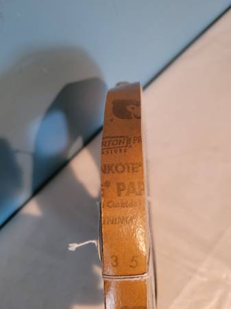 Roll Of Tan Sandpaper, measures about 3/4" wide x 7 1/4" across. Not sure if its 120 grit. I don't know how much is on the roll. See pictures for information. New Bx tool box