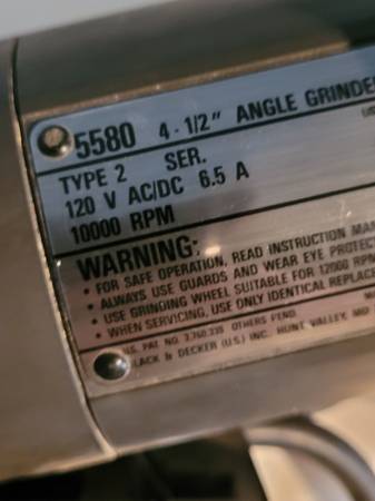 Vintage Angle Grinder by Black and Decker, works good. Master series 5580. See pictures for information and any imperfections. Used I do ship, buyer pays shipping cost. Bx big box