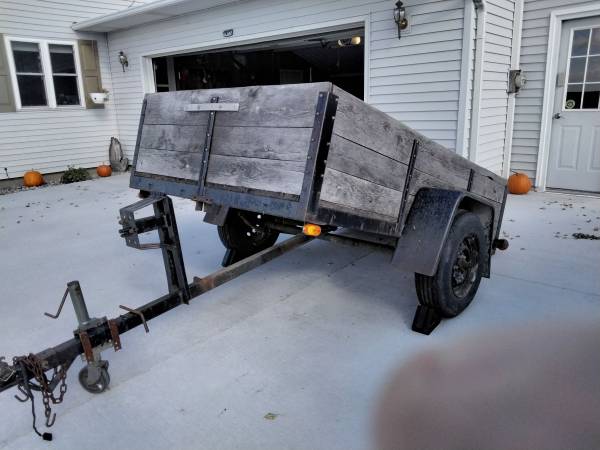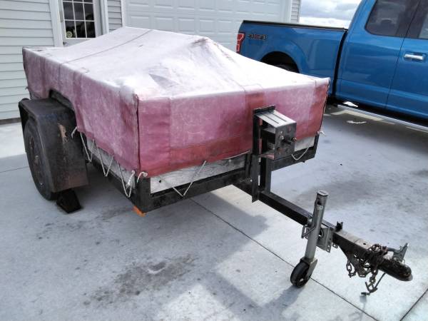 5' x8' trailer with 2ft sides. 3500 lb axel. Square tube frame. Refurbished with new paint and 1in oak boards in 2020. Newer tires. 2 in ball. Tie down cover.